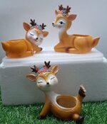 Crazy 1 Pots Handmade & Hand Painted Resin Animal Deer Indoor Succulent Planter Pot (Small, Winking, Playing & Sleeping Deer) – Set of 3
