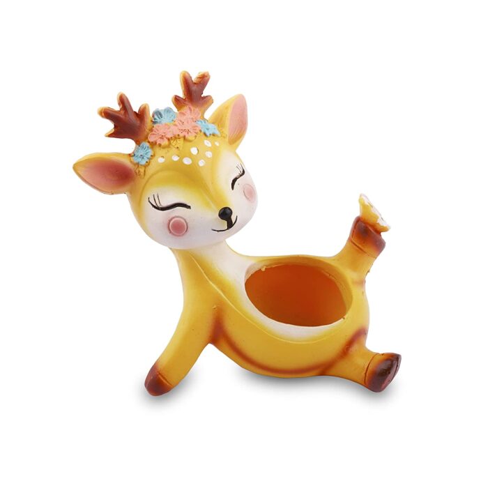 Crazy 1 Pots Handmade & Hand Painted Resin Animal Deer Indoor Succulent Planter Pot (Small, Winking, Playing & Sleeping Deer) – Set of 3