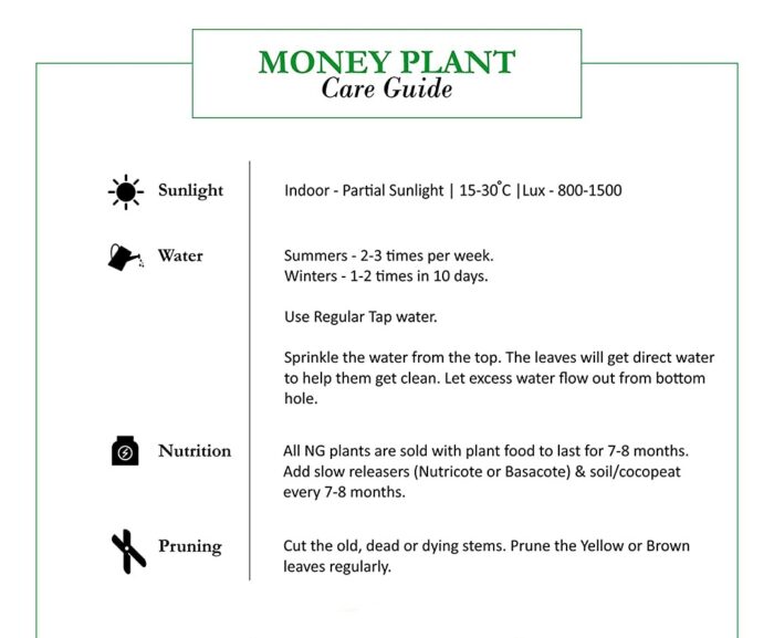 Fertilizer/ feed for the plant:Feed your money plant with organic fertilisers once a month in winters and every two weeks from spring to summer. Also use a well rotten cow dung manure at the time of potting and repotting the plant.
