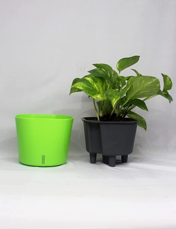Excess water gets stored in the reservoir below, the roots then absorbs water via capillary action and the plants get water as and when required.
